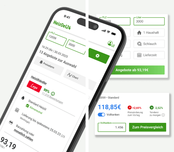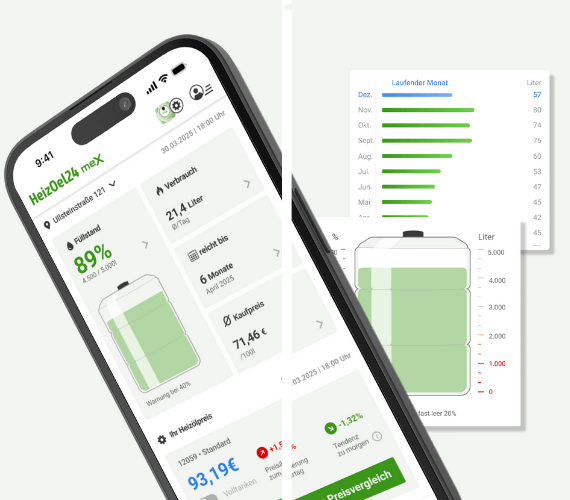 Um den günstigsten Kaufzeitpunkt für Ihr Heizöl nicht zu verpassen, vergleichen Sie mit unserer App Heizölpreise vergleichen - ganz schnell und einfach! So sind Sie auch unterwegs immer bestens informiert.