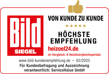 Empfehlungen sind das beste Qualitätsmerkmal – und HeizOel24 überzeugt erneut! Bereits zum vierten Mal in Folge wurde das Heizölvergleichsportal mit der „höchsten Kundenempfehlung“ ausgezeichnet und trägt stolz das renommierte BILD-Siegel „von Kunde zu Kunde“ 2025.